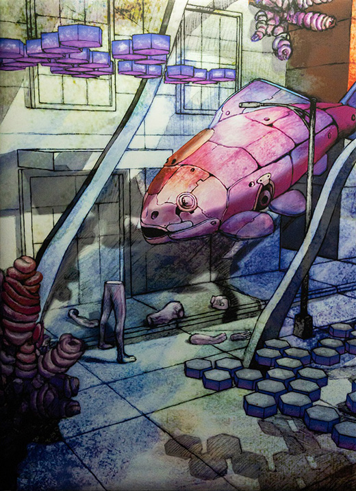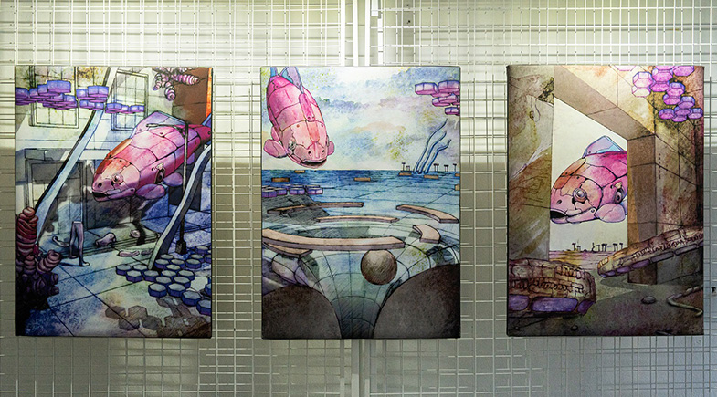 또한 작가는 이다다 작가와 구동현을 섭외하였다. 이다다 작가는 네오의 이야기를 듣고, 네오가 관조자가 되어 관찰하는 세계를 구현하였는데, 이 안에서 네오는 어떤 세계를 탐험하고 관찰하며 떠다닌다. 이것이 3개의 평면 작품으로 전시에 등장하였다. 여기에 등장하는 네오는 이미정 작가가 가지고 있는 장난감 네오가 아닌, 기계로 된 형태의 로봇 물고기와 비슷하다. 로봇물고기 네오는 픽셀 이미지로 재현된 듯한 세계, 고대의 폐허나 산업현장과도 같은 나름의 상상의 세계를 탐험하고 관조한다.